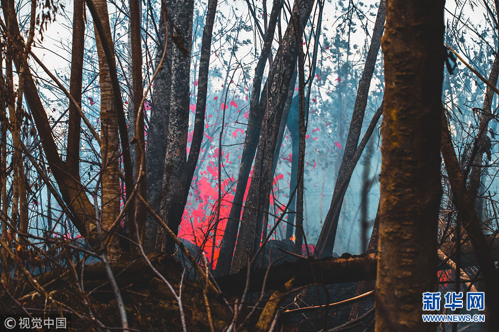 5月13日,美國夏威夷,基拉韋厄火山仍處于持續噴發的狀態,火山周圍又出現了新的噴發裂縫。(圖片來源:視覺中國)