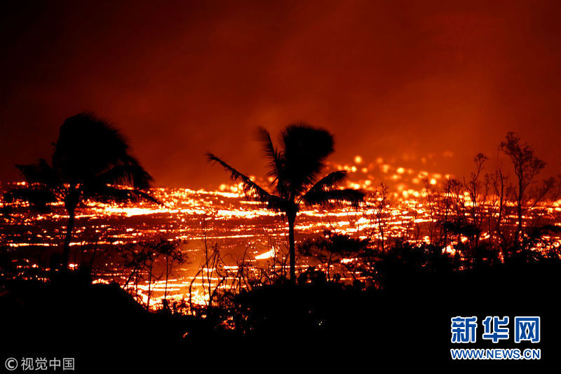5月18日,美國夏威夷,夏威夷火山持續噴發,噴出熾熱熔巖。(圖片來源:視覺中國)