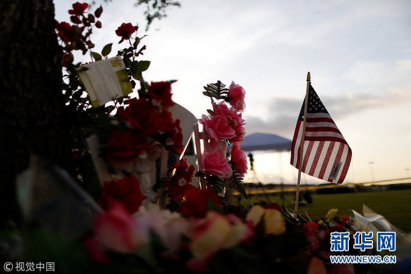 美國民眾獻花悼念圣菲高中槍擊案遇難者