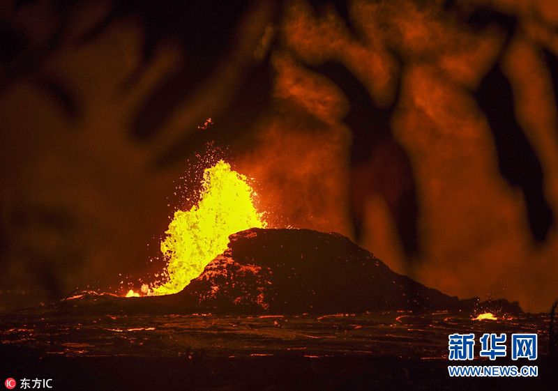 5月23日,美國夏威夷,基拉韋厄火山繼續(xù)噴發(fā),火紅巖漿從裂縫涌出,畫面震撼。(圖片來源:東方IC)