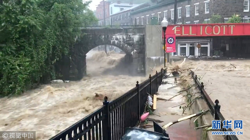 美國馬里蘭州爆發洪水 城市街道變湍急河流