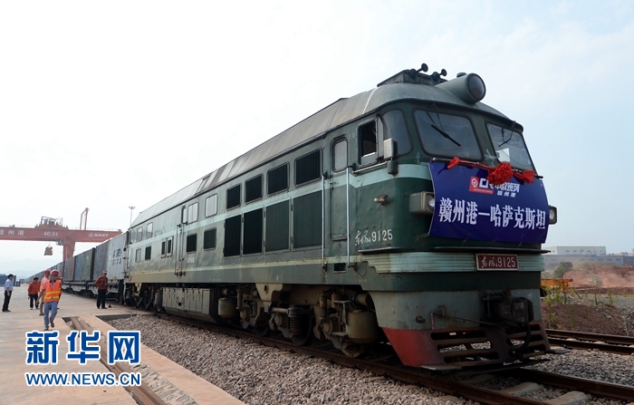 為世界和平發(fā)展注入強(qiáng)勁正能量——記中國(guó)擔(dān)任上海合作組織輪值主席國(guó)一年間在江西省贛州市南康區(qū)贛州港,“贛州港至哈薩克斯坦”中歐班列等待發(fā)車(2017年7月27日攝)。新華社記者 彭昭之 攝