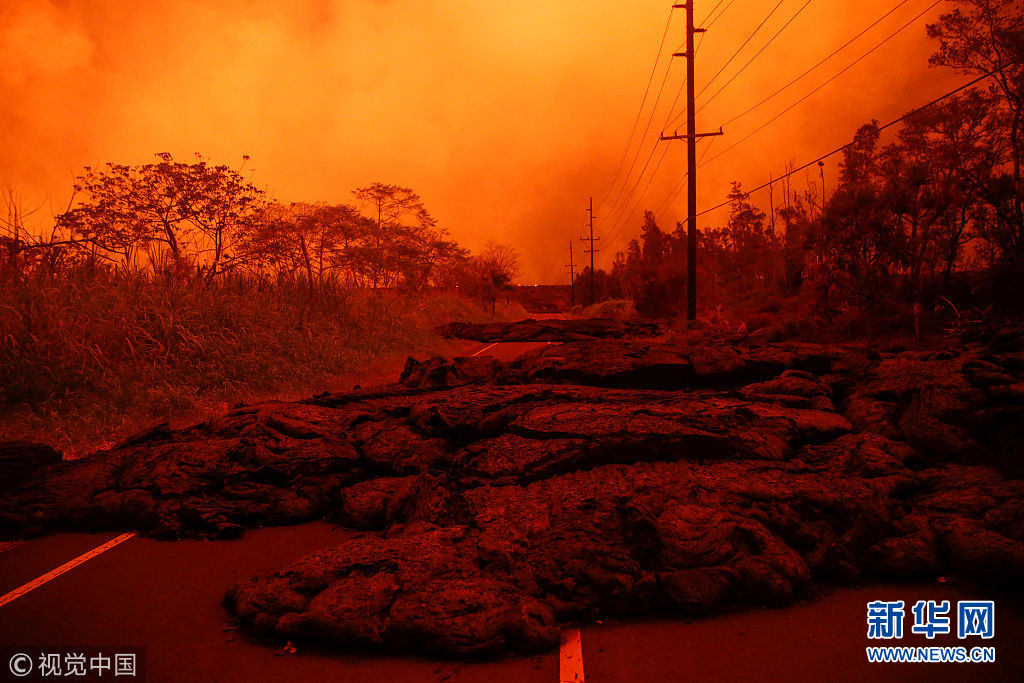 6月8日,美國夏威夷,基拉韋厄火山持續噴發,夜空被巖漿照亮。(圖片來源:視覺中國)