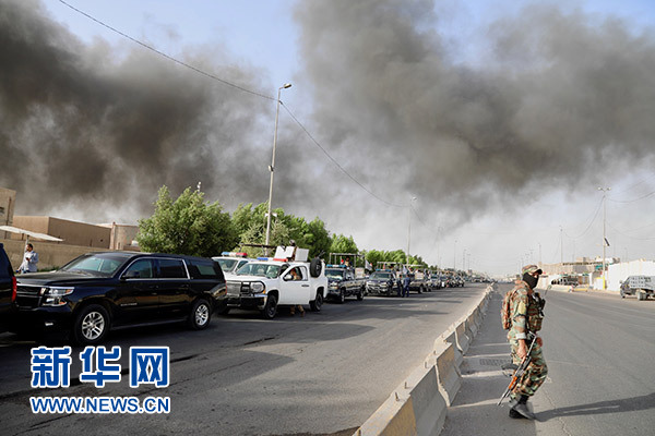 6月10日,在伊拉克首都巴格達(dá),伊拉克安全人員和消防人員在火災(zāi)現(xiàn)場工作。新華社發(fā)(哈利勒·達(dá)伍德 攝)