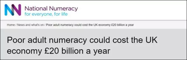 英國國家數學能力中心就曾“恨鐵不成鋼”地發布統計報告稱:英國成年人糟糕的數學水平會讓英國每年無意中損失200億英鎊。