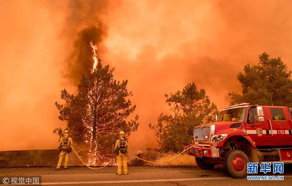 當地時間2018年7月1日,美國加州克利爾萊克奧克斯,加州萊克縣“波尼”(Pawnee)大火持續(xù)蔓延,現場烈火熊熊,過火面積達3000英畝(約合12150公頃)。(圖片來源:視覺中國)