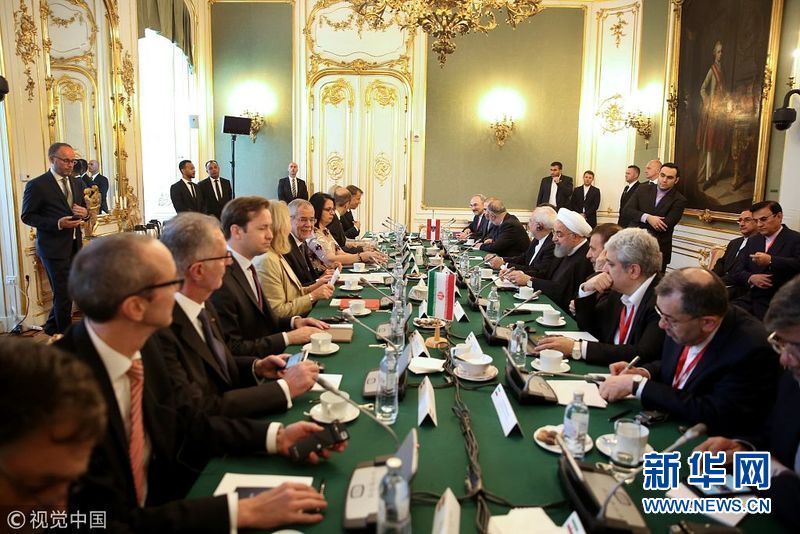 2018年7月4日,奧地利維也納,伊朗總統(tǒng)魯哈尼抵達(dá)奧地利進(jìn)行訪問,會(huì)晤?yuàn)W地利總統(tǒng)范德貝倫和總理塞巴斯蒂安·庫爾茨。伊朗總統(tǒng)魯哈尼2日出發(fā)前往瑞士和奧地利訪問。他這次西歐行將重點(diǎn)討論伊朗核問題全面協(xié)議。(圖片來源:視覺中國)