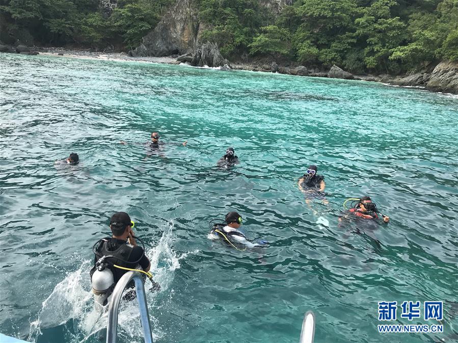 7月8日,在泰國普吉,來自民間的公羊救援隊與普吉藍海救援隊成員參與救援。