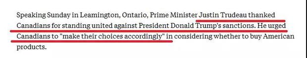 第三,大是大非上一定要團(tuán)結(jié)一致。一說到團(tuán)結(jié),有的人總會聯(lián)想過于豐富:要么認(rèn)為這是要老百姓放棄自己的思考,要么認(rèn)為必須通過極端方式表達(dá)自己洶涌的激情——我們印象里一向溫和的加拿大,這次是怎么做的?用美聯(lián)社報(bào)道的話:特魯多在利明頓市演講時(shí)表示:感謝加拿大民眾團(tuán)結(jié)一致反對特朗普的制裁,并鼓勵(lì)民眾根據(jù)自己的實(shí)際情況做出要不要買美國產(chǎn)品的選擇。特魯多為什么這樣說?事實(shí)上,自從G7之后特朗普攻擊特魯多“軟弱”“虛偽”以來,推特上“購買加拿大產(chǎn)品”“抵制美國貨”“抵制美國”“擺脫川普”等話題就在不斷升溫,很多加拿大人調(diào)整了消費(fèi)習(xí)慣,轉(zhuǎn)而購買自己國家的產(chǎn)品。網(wǎng)友們的這些抵制活動(dòng),被特魯多稱為是一股“愛國熱情”。