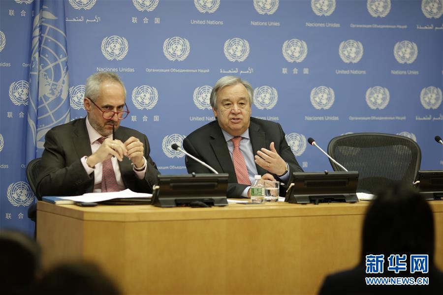 7月12日,在位于紐約的聯(lián)合國總部,聯(lián)合國秘書長古特雷斯(右)出席記者招待會(huì)。聯(lián)合國秘書長古特雷斯12日舉行記者招待會(huì),強(qiáng)調(diào)多邊主義和基于規(guī)則的國際關(guān)系對于應(yīng)對全球挑戰(zhàn)的重要性。新華社記者 李木子 攝