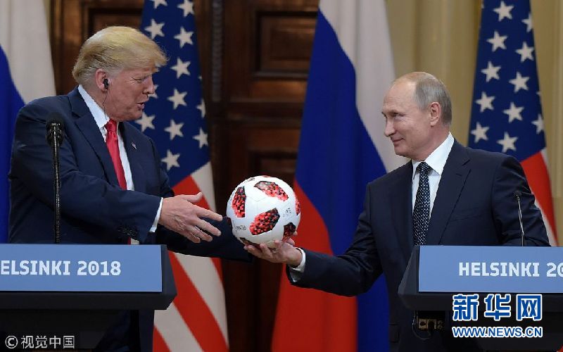 當地時間2018年7月16日,芬蘭赫爾辛基,美國總統特朗普與俄羅斯總統普京出席聯合新聞發布會。(圖片來源:視覺中國)