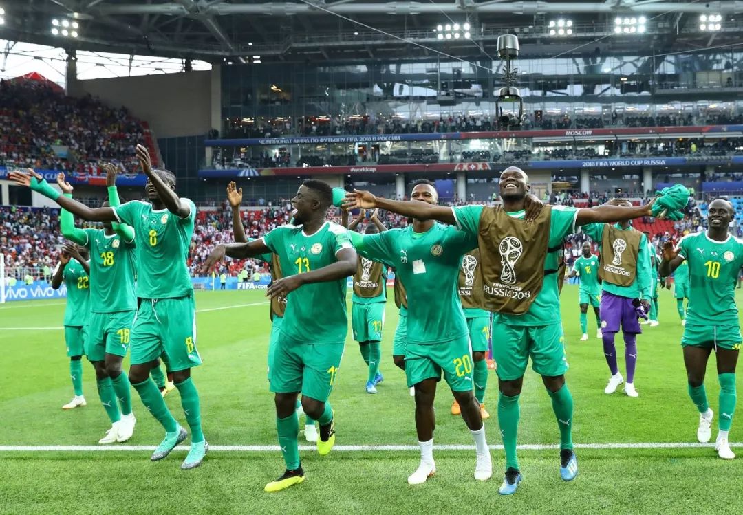 △塞內加爾男足在俄羅斯世界杯小組賽中戰勝波蘭,全隊慶祝勝利