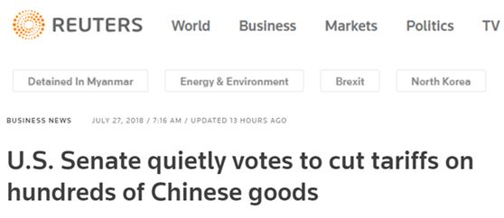 但奇怪的是,雖然一些美國媒體也簡單報道了這個法案繼數月前全票通過美國眾議院、昨天又在簡單修改后得到美國參議院一致通過的事情,這些媒體卻并沒有深挖這個法案中暗藏的一個與中美貿易戰有關的“玄機”。