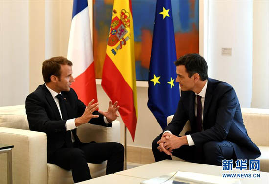 法國總統馬克龍7月26日在馬德里(圖左)與西班牙首相桑切斯舉行會談
