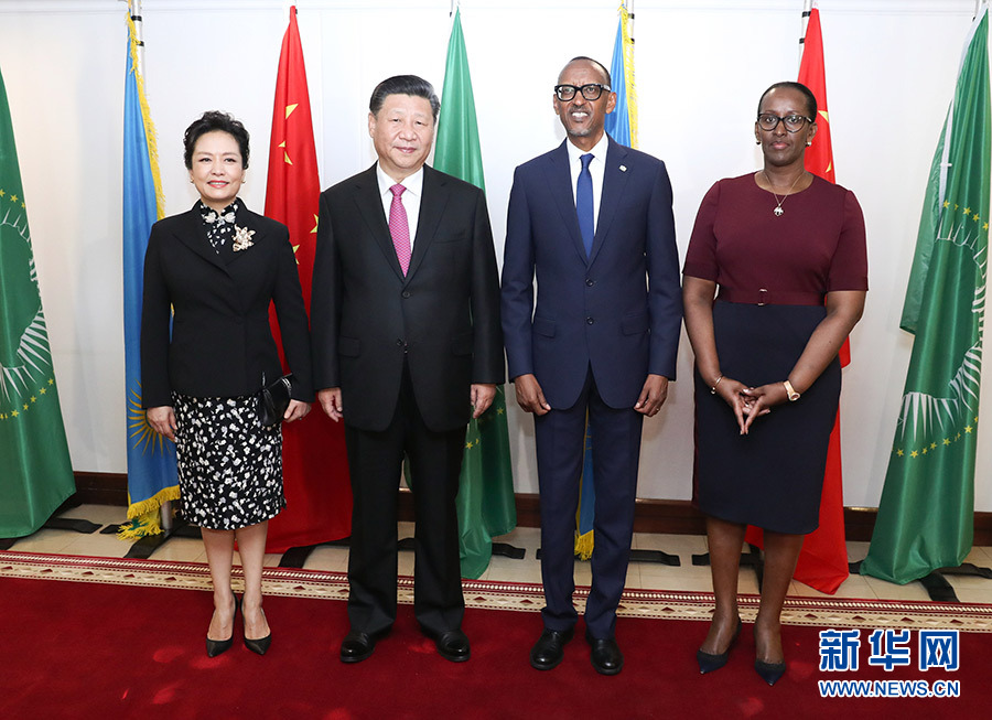 7月23日,國家主席習(xí)近平在基加利同盧旺達(dá)總統(tǒng)卡加梅舉行會談。這是會談前,習(xí)近平和夫人彭麗媛同卡加梅和夫人珍妮特合影。 新華社記者 龐興雷 攝