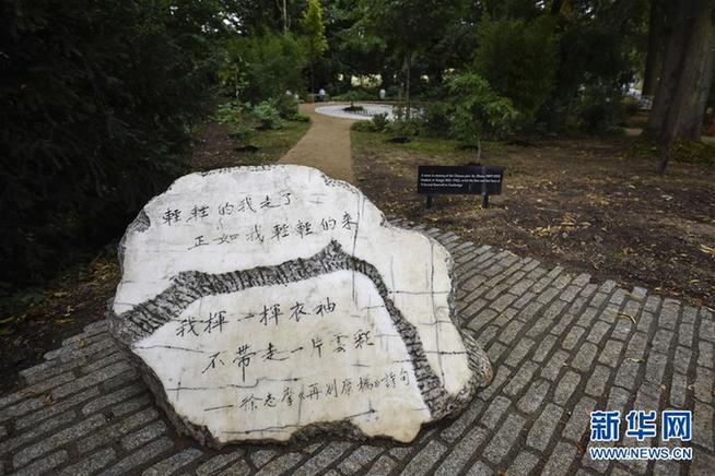 新華社英國劍橋8月10日電 通訊:詩歌為媒 草木關情——英國劍橋大學建中式花園紀念徐志摩