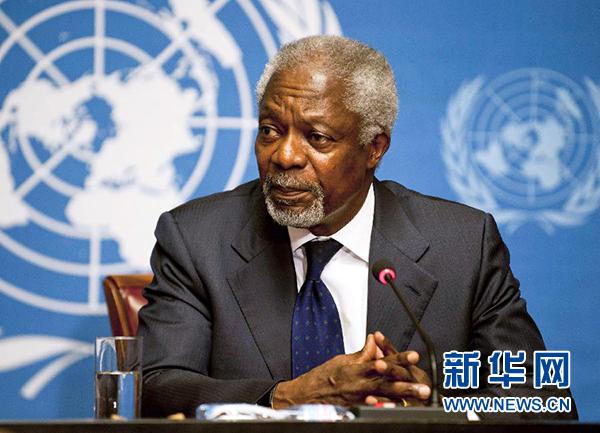 這是2012年6月30日,時任聯合國-阿盟敘利亞危機聯合特使安南在瑞士日內瓦出席新聞發布會。 新華社記者謝海寧攝