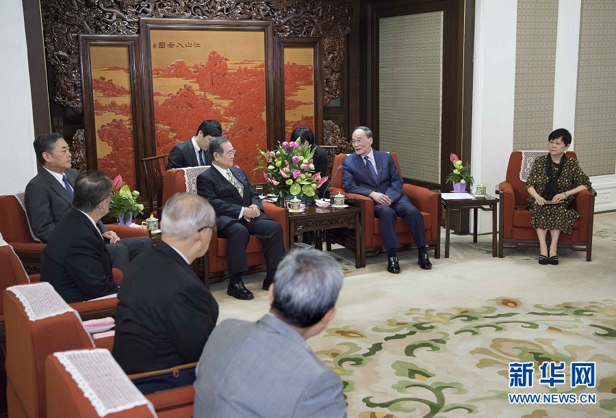 8月24日,國家副主席王岐山在北京中南海會見日中協會會長、自民黨眾議員野田毅率領的日中協會代表團。 新華社記者李濤攝