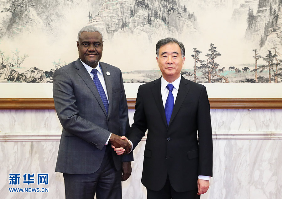 9月5日,全國政協主席汪洋在北京釣魚臺國賓館會見非盟委員會主席法基。 新華社記者 謝環馳 攝