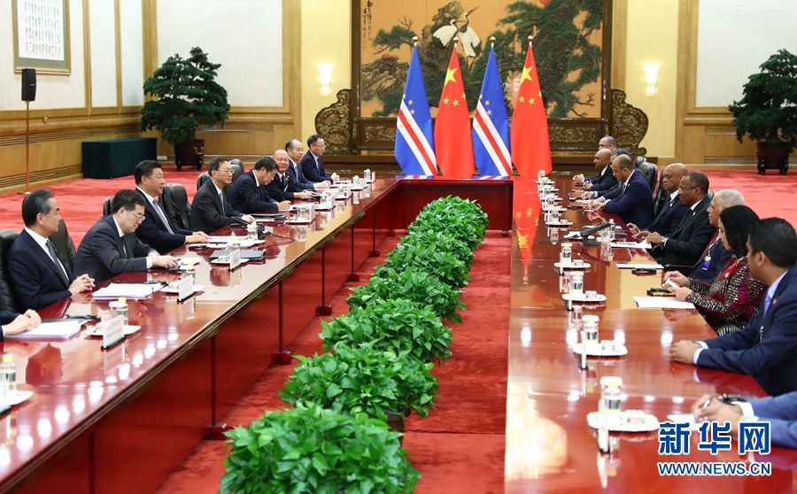 9月6日,國家主席習近平在北京人民大會堂會見佛得角總理席爾瓦。 新華社記者謝環馳攝