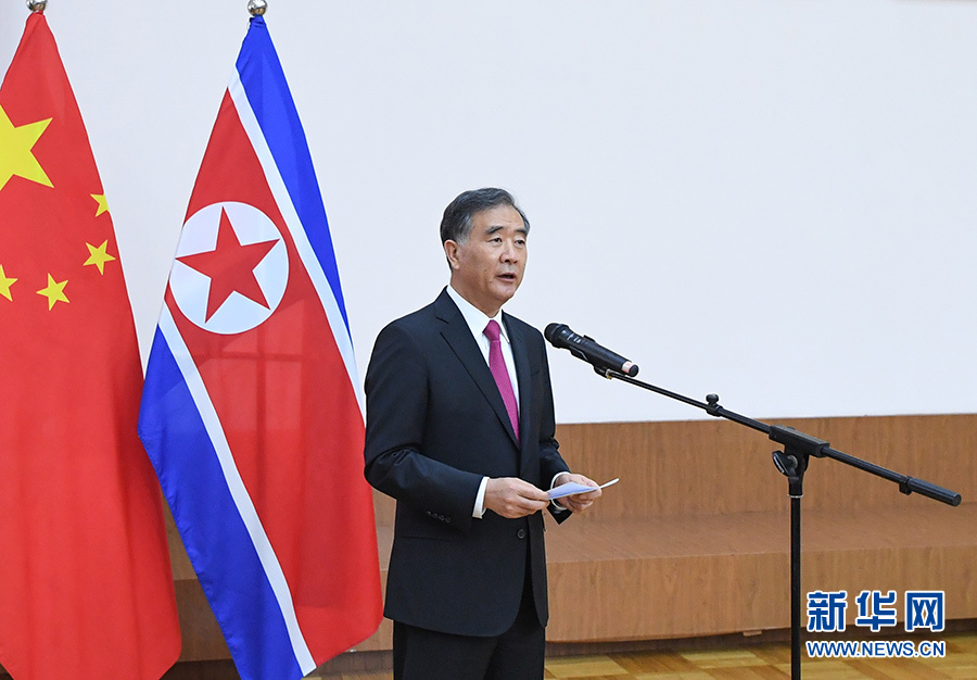 汪洋表示,受習近平總書記委托,我謹代表中國共產黨、中國政府和人民熱烈祝賀朝鮮建國70周年。在金日成主席、金正日總書記、金正恩委員長和朝鮮勞動黨領導下,朝鮮人民堅決捍衛祖國獨立,在社會主義建設事業中取得重大成就。中方相信,在實施朝鮮勞動黨七屆三中全會上提出的調整戰略路線、集中一切力量發展經濟后,朝鮮社會主義事業將迎來新的光明前景。今年以來,兩國最高領導人三次舉行重要會晤,掀開中朝關系新篇章。中方愿同朝方一道維護好、鞏固好、發展好中朝關系,更好地造福兩國和兩國人民,為地區和平與穩定作出新的貢獻。