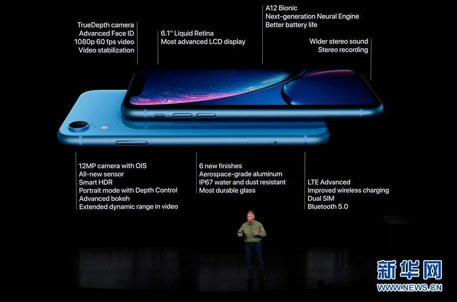 9月12日,在美國加利福尼亞州丘珀蒂諾市舉行的蘋果新品發(fā)布會上,蘋果公司全球市場營銷高級副總裁菲利普·席勒介紹新推出的蘋果手機iPhone XR。新華社發(fā)