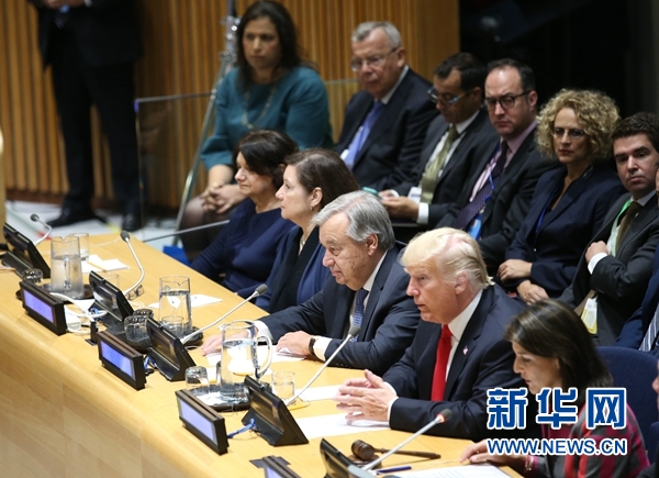 9月24日,在紐約聯(lián)合國總部,聯(lián)合國秘書長(zhǎng)古特雷斯(前排右三)出席“呼吁全球采取行動(dòng)應(yīng)對(duì)世界毒品問題”高級(jí)別會(huì)議。新華社記者秦朗攝