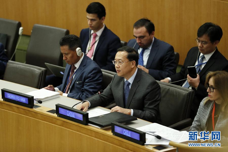 10月9日,在位于紐約的聯(lián)合國總部,中國常駐聯(lián)合國代表馬朝旭(前排中)在第73屆聯(lián)大第五委員會常會關(guān)于會議組織工作的會議上發(fā)言。 馬朝旭強調(diào),聯(lián)合國預(yù)算資金使用應(yīng)該更加重視全面績效管理。 新華社記者李木子攝