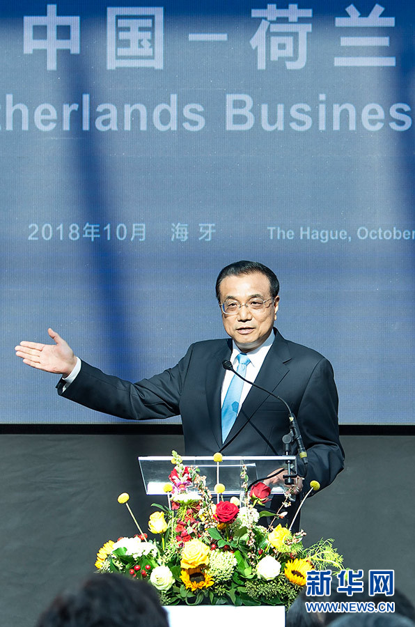 新華社海牙10月16日電(記者張正富 金晶)當地時間10月16日中午,國務院總理李克強在海牙市立博物館與荷蘭首相呂特共同出席中國-荷蘭經貿論壇并發表主旨演講。