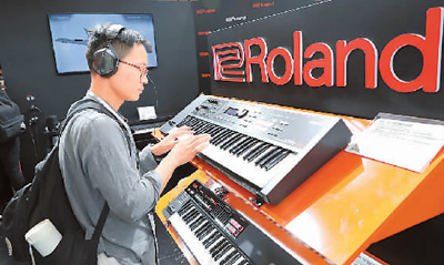 在首屆國際進博會上,樂器將是很多人關(guān)注的焦點。圖為一名中國消費者在試用新產(chǎn)品。新華社記者 方 喆攝