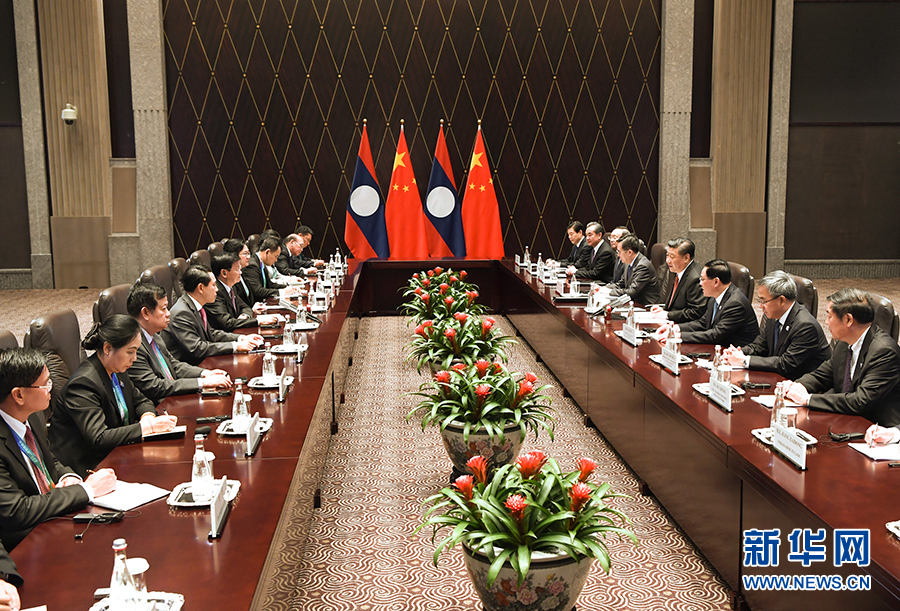 11月4日,國(guó)家主席習(xí)近平在上海會(huì)見(jiàn)老撾總理通倫。 新華社記者 饒愛(ài)民 攝