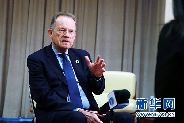 聯(lián)合國(guó)日內(nèi)瓦辦事處總干事邁克爾·穆勒在北京接受新華社記者專訪(11月14日攝)。新華社記者 潘旭 攝