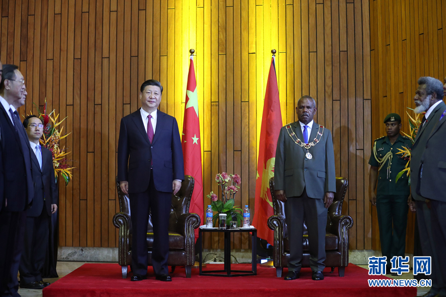 11月16日,國家主席習(xí)近平在莫爾茲比港會見巴布亞新幾內(nèi)亞總督達(dá)達(dá)埃。會見開始前,達(dá)達(dá)埃在議會大廈前廣場為習(xí)近平舉行隆重歡迎儀式。新華社記者 丁林 攝
