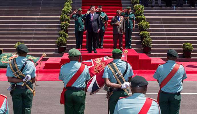 11月16日,國家主席習(xí)近平在莫爾茲比港會(huì)見巴布亞新幾內(nèi)亞總督達(dá)達(dá)埃。會(huì)見開始前,達(dá)達(dá)埃在議會(huì)大廈前廣場為習(xí)近平舉行隆重歡迎儀式。新華社記者 丁林 攝
