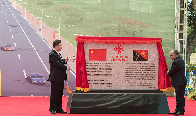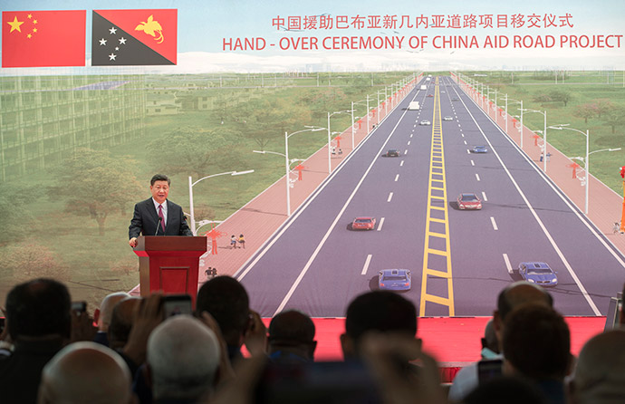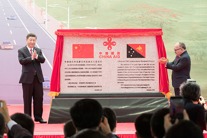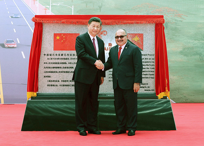 11月16日,國家主席習(xí)近平在莫爾茲比港和巴布亞新幾內(nèi)亞總理奧尼爾共同出席中國援建的獨(dú)立大道移交啟用儀式。新華社記者 鞠鵬 攝