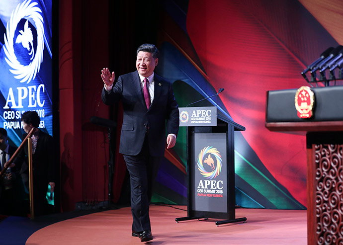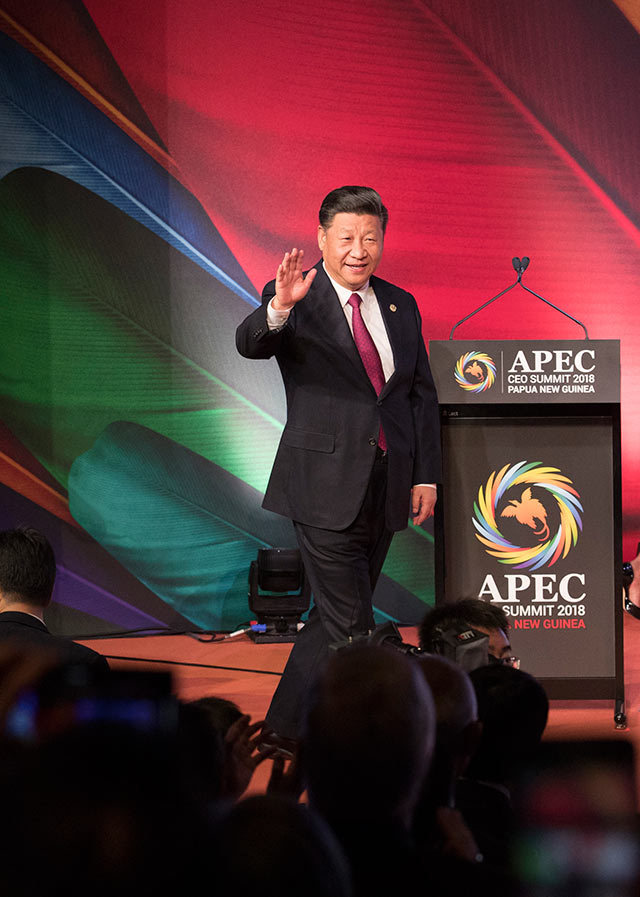 11月17日,國家主席習近平應邀出席在巴布亞新幾內亞莫爾茲比港舉行的亞太經合組織工商領導人峰會并發(fā)表題為《同舟共濟創(chuàng)造美好未來》的主旨演講。新華社記者 鞠鵬 攝