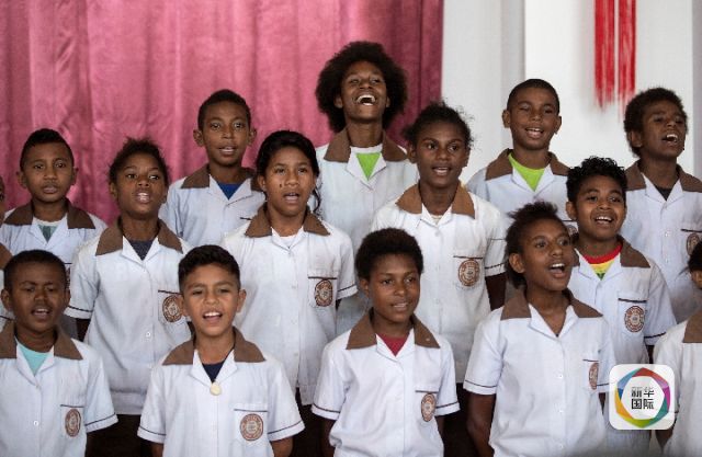 2018年11月13日,巴布亞新幾內亞首都莫爾茲比港。孩子們為歡迎出席中國-巴新友誼學校·布圖卡學園啟用儀式的習近平主席精心排練歌曲《茉莉花》。(新華社記者費茂華攝)