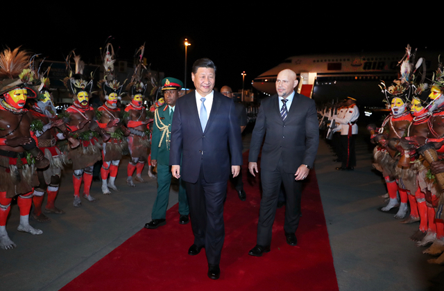 2018年11月15日,國家主席習近平乘專機抵達莫爾茲比港,開始對巴布亞新幾內亞獨立國進行國事訪問、同建交太平洋島國領導人會晤并出席亞太經合組織第二十六次領導人非正式會議。(新華社記者鞠鵬攝)