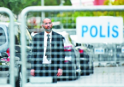 10月,卡舒吉案發生后,一名安保人員在沙特駐伊斯坦布爾領事館外執勤。新華社發