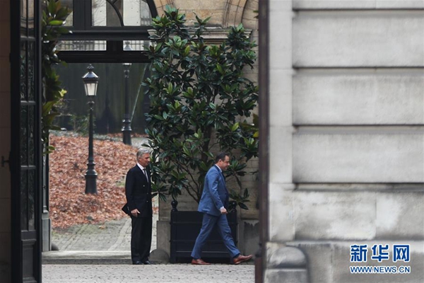 12月19日,比利時(shí)國王菲利普(左)在位于首都布魯塞爾的王宮送別前來會面的政要。新華社記者鄭煥松攝