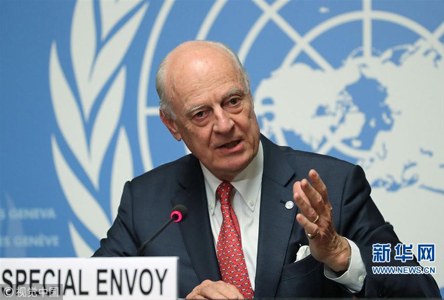 當(dāng)?shù)貢r(shí)間2018年12月18日,瑞士日內(nèi)瓦,聯(lián)合國(guó)秘書長(zhǎng)敘利亞問(wèn)題特使德米斯圖拉參加討論組建敘利亞憲法委員會(huì)問(wèn)題的會(huì)議并出席新聞發(fā)布會(huì)。(圖片來(lái)源:視覺中國(guó))