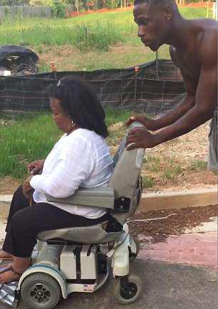 6月14日,美國佐治亞州,一名男子酷暑下推了30分鐘輪椅,幫助因輪椅電池損壞被困路中間的殘疾女士回家。