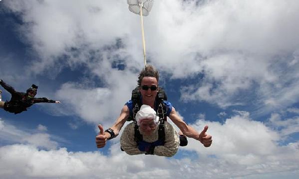 12月9日,澳大利亞蘭霍恩溪,102歲的老奶奶奧謝玩高空跳傘,給運動神經元疾病研究籌措資金。這種病2008年奪去了她女兒的生命。