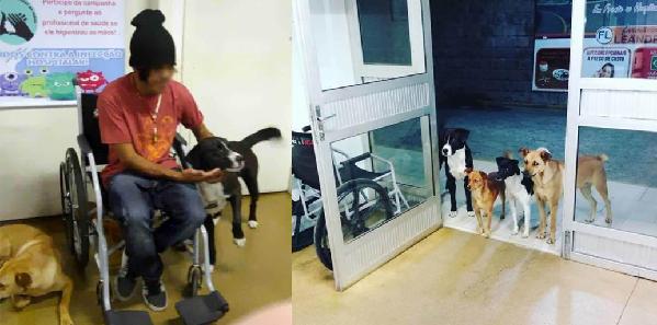12月16日,巴西流浪漢塞薩爾凌晨求醫,他的“家屬”——四只流浪狗趕來“陪護”。