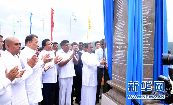當(dāng)天上午,斯里蘭卡總統(tǒng)西里塞納為拉格勒鎮(zhèn)石碑揭幕,宣布小鎮(zhèn)正式落成。隨后,西里塞納為K壩項目主體工程完工紀念碑揭幕,并對中國企業(yè)的付出表示感謝。