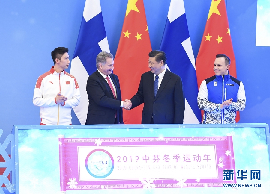 簽字儀式后,習(xí)近平同尼尼斯托共同出席了“2019中芬冬季運(yùn)動(dòng)年”啟動(dòng)儀式。習(xí)近平在致辭中指出,新中國(guó)第一次走上奧運(yùn)賽場(chǎng)就是參加1952年芬蘭赫爾辛基奧運(yùn)會(huì),五星紅旗第一次在奧林匹克體育場(chǎng)上升起。中芬冬季運(yùn)動(dòng)發(fā)展契合度高、互補(bǔ)性強(qiáng),合作潛力巨大。相信“2019中芬冬季運(yùn)動(dòng)年”將推動(dòng)兩國(guó)體育合作邁上新臺(tái)階,共同為中芬人文交流注入新活力,不斷推動(dòng)中芬面向未來(lái)的新型合作伙伴關(guān)系邁上新臺(tái)階。尼尼斯托表示,中國(guó)已成為世界體育大國(guó)。芬中在體育領(lǐng)域結(jié)緣已久。芬蘭支持中國(guó)成功舉辦2022年冬奧會(huì),很高興成為第一個(gè)同中國(guó)開啟冬季運(yùn)動(dòng)年的國(guó)家,相信這將進(jìn)一步促進(jìn)兩國(guó)人民的友誼。中國(guó)正在向冬季運(yùn)動(dòng)強(qiáng)國(guó)邁進(jìn),芬蘭愿助一臂之力。