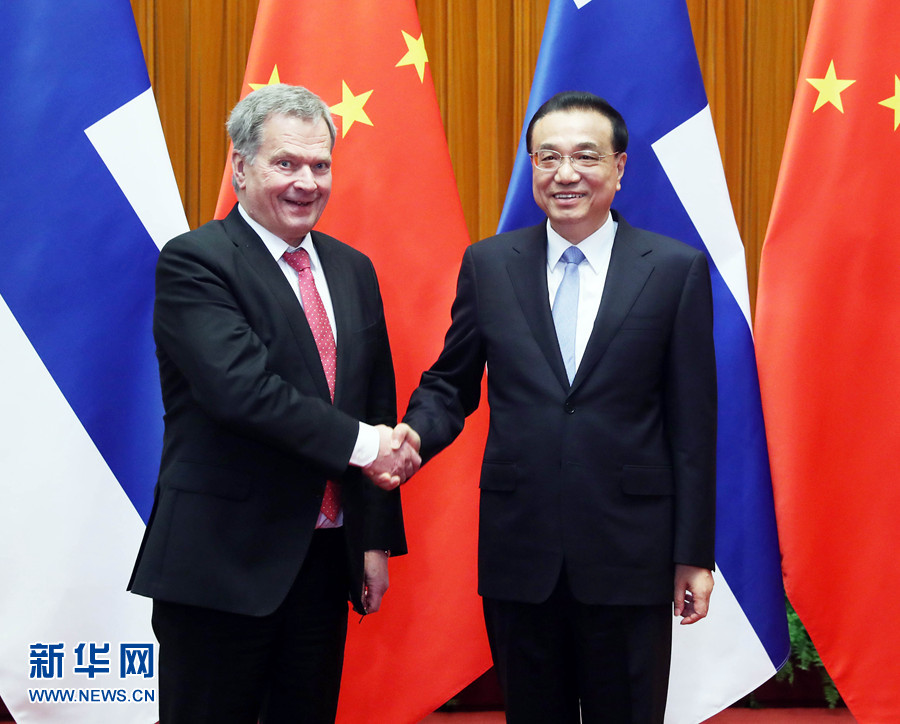 李克強(qiáng)表示,中芬關(guān)系長(zhǎng)期以來(lái)保持良好穩(wěn)定發(fā)展,走在中國(guó)同西方國(guó)家關(guān)系的前列。昨天,習(xí)近平主席同總統(tǒng)先生舉行了富有成果的會(huì)談,共同規(guī)劃兩國(guó)關(guān)系未來(lái)發(fā)展。中方愿同芬方繼續(xù)努力,推動(dòng)中芬合作取得更多新成果,為中芬關(guān)系不斷注入新動(dòng)力。