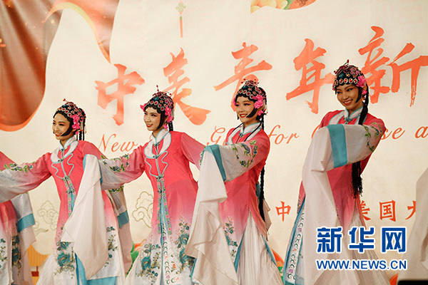 2月16日,在美國首都華盛頓,演員在中美青年新春聯歡活動上表演。 新華社記者 劉杰 攝