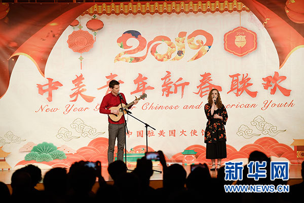 2月16日,在美國首都華盛頓,演員在中美青年新春聯歡活動上演唱歌曲《因為愛情》。 新華社記者 劉杰 攝