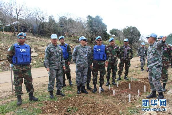 2月19日,在黎巴嫩以色列邊境“藍(lán)線”附近一處雷場,中國維和官兵向柬埔寨維和官兵介紹安全高效掃雷排爆經(jīng)驗(yàn)。新華社發(fā)(尹博 攝)